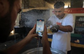 在加沙的Deir al-Balah, Hamada Shaqoura前往市场寻找当天...