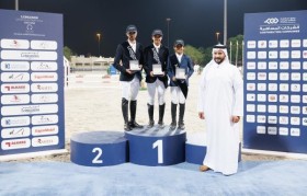 卡塔尔多哈:周五,加尼姆·穆罕默德·阿尔·比纳利在浪琴表哈塔布卡塔尔马术...