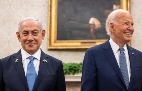 2024年7月25日,以色列总理本雅明·内塔尼亚胡(左 在美国华盛顿特区...